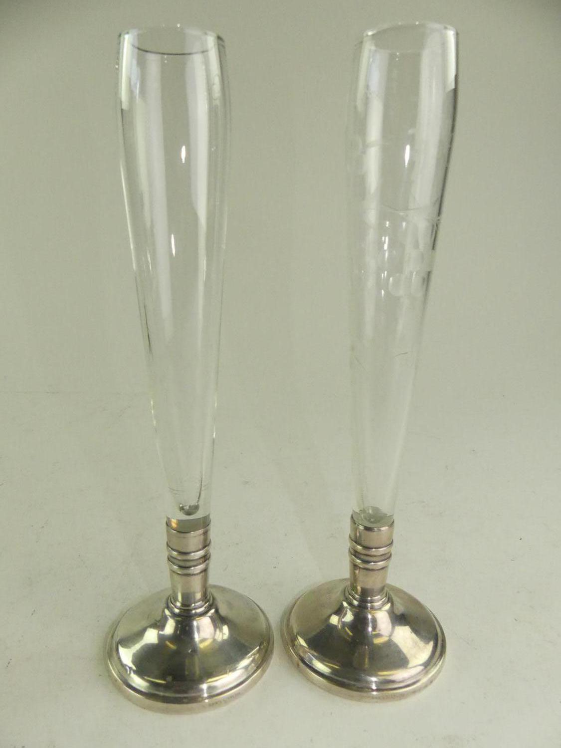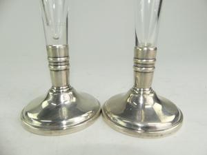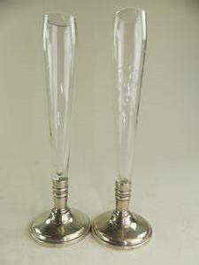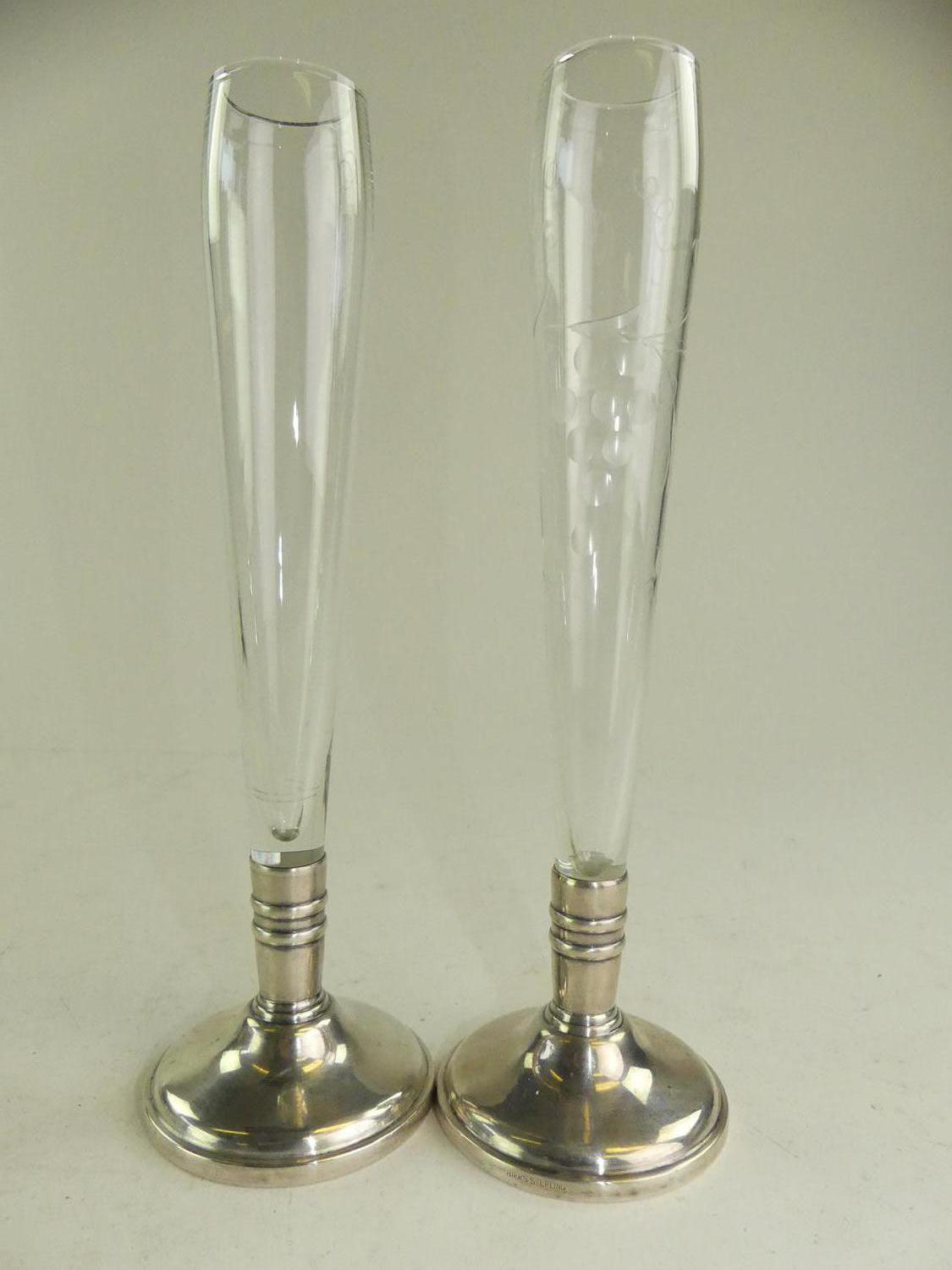two sterling silver cut glass bud vases, ht. 9 1/2"