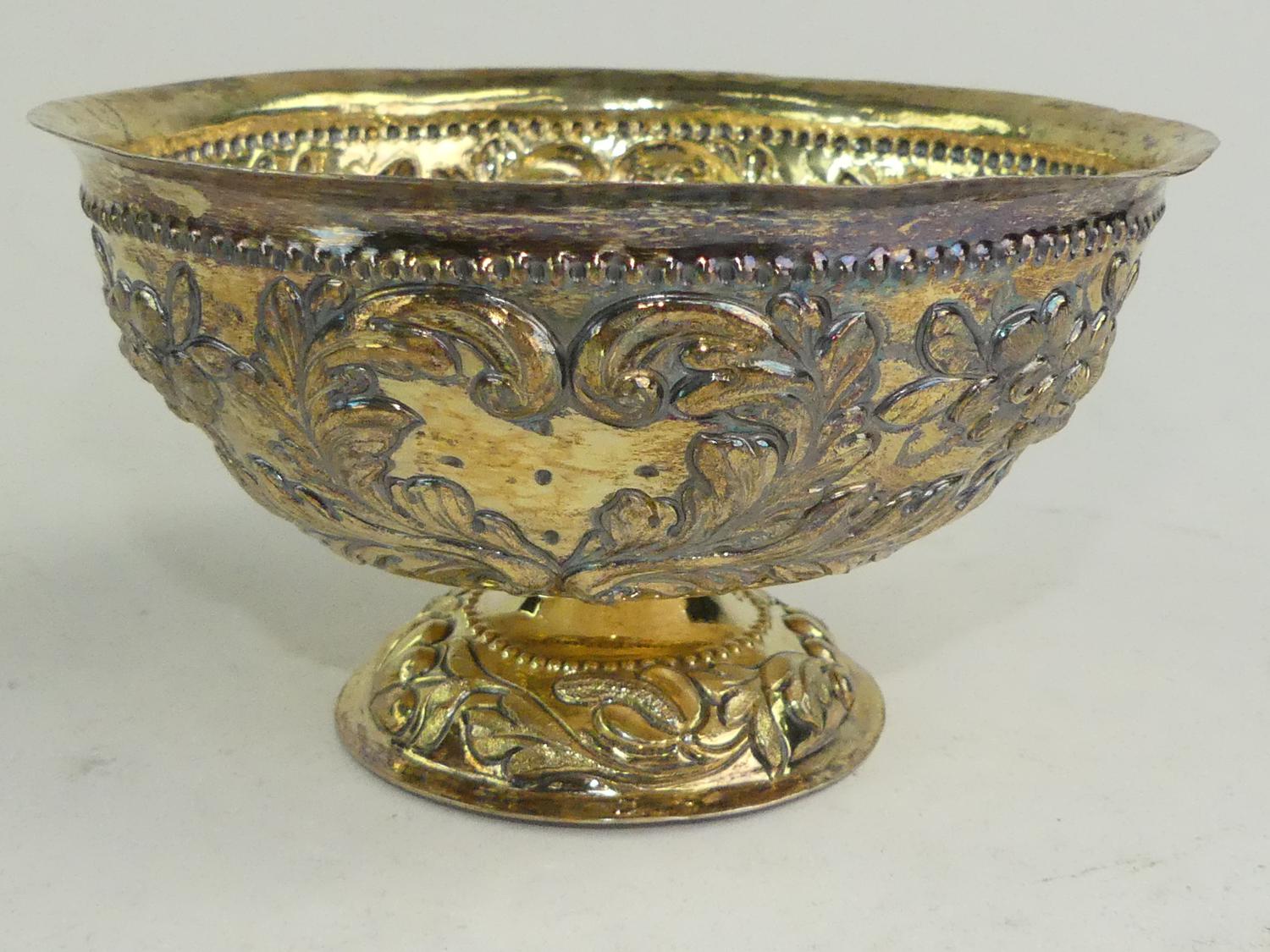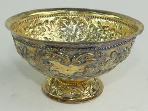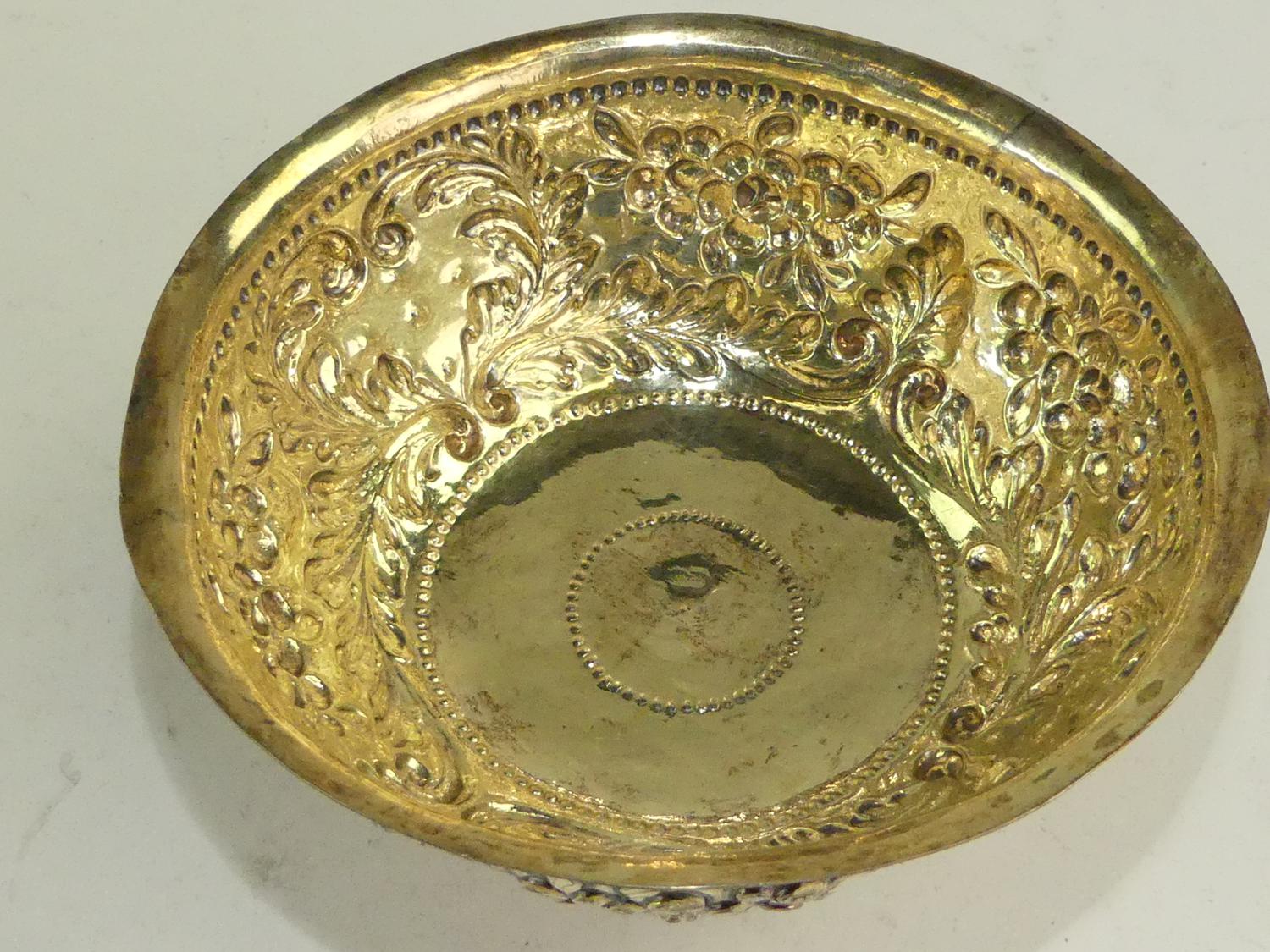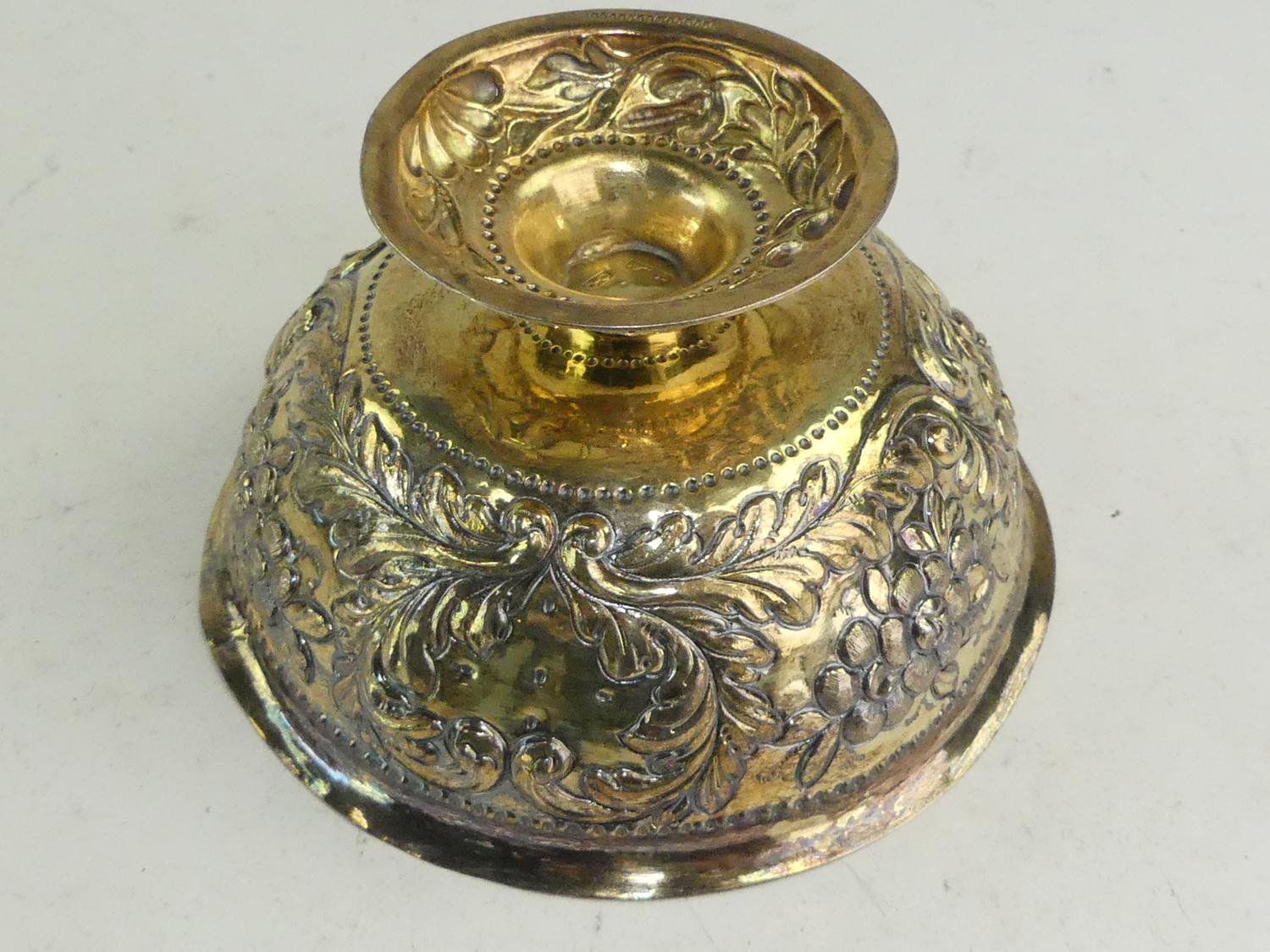 early 18th century german silver gilt repousse brandy bowl, 3" x 5 1/4", 161 grams - from the ross estate, butchart gardens, victoria bc