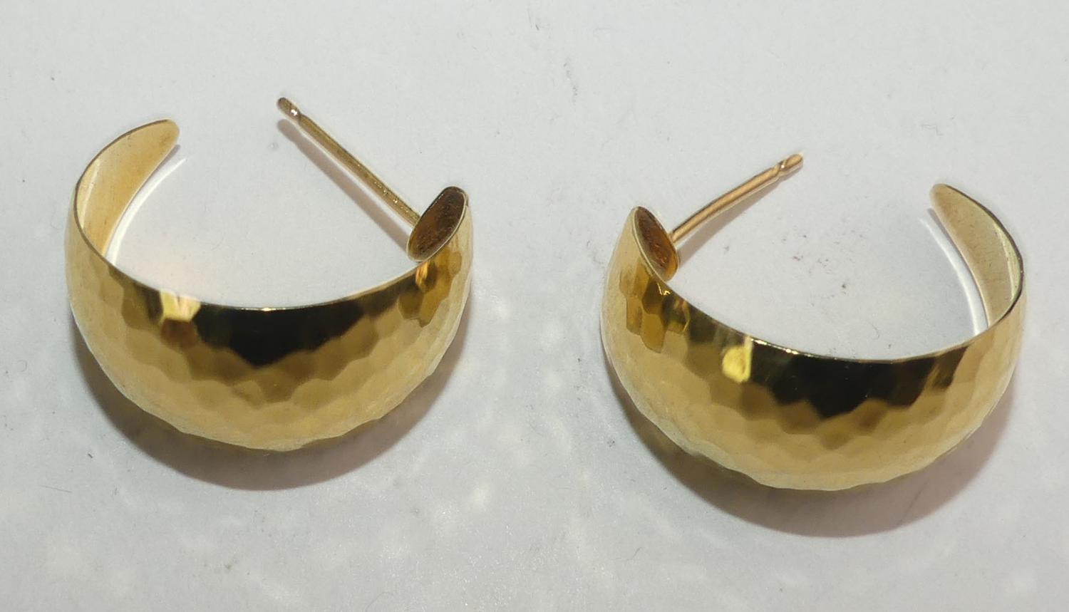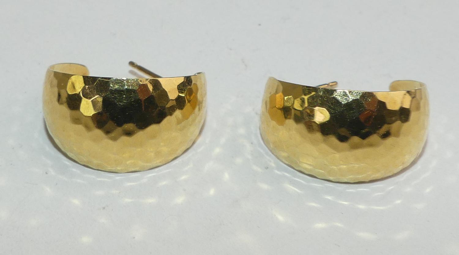 14k gold hammered hoop earrings, 4.4 grams, 7/8"