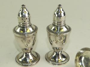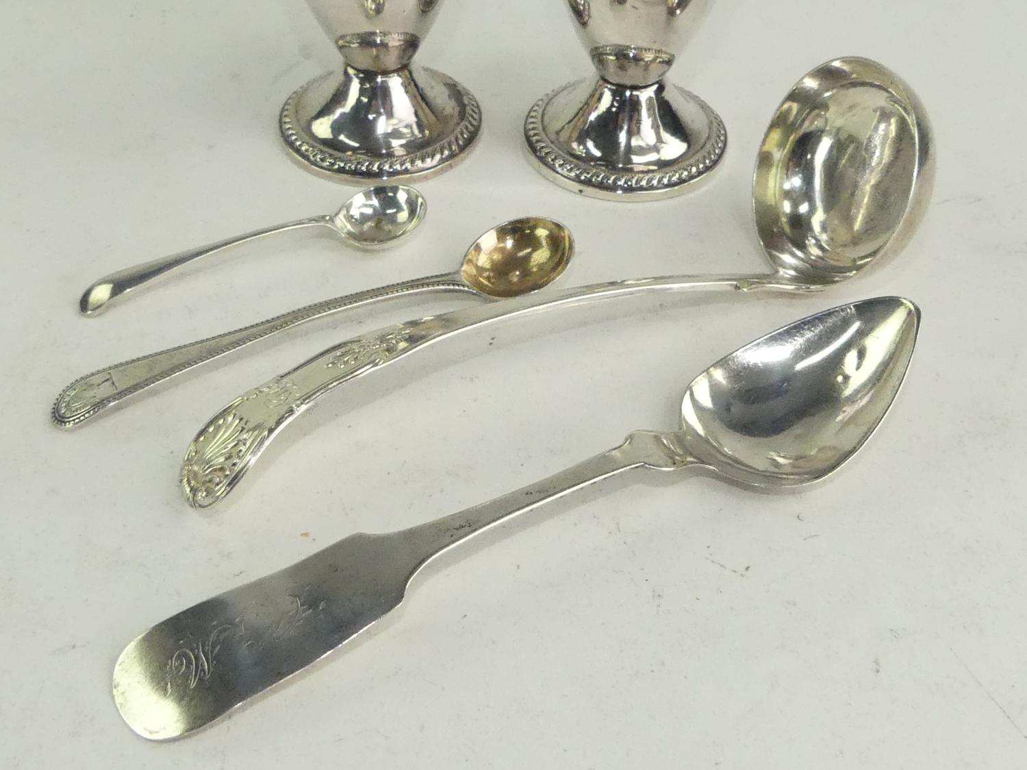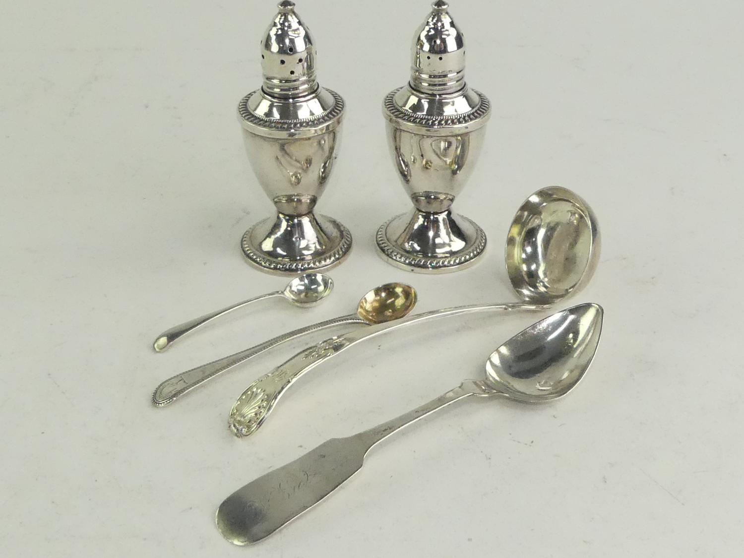 lot of sterling silver including pair of shakers(glass liners) and spoons, 230 gross grams