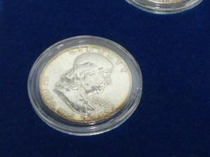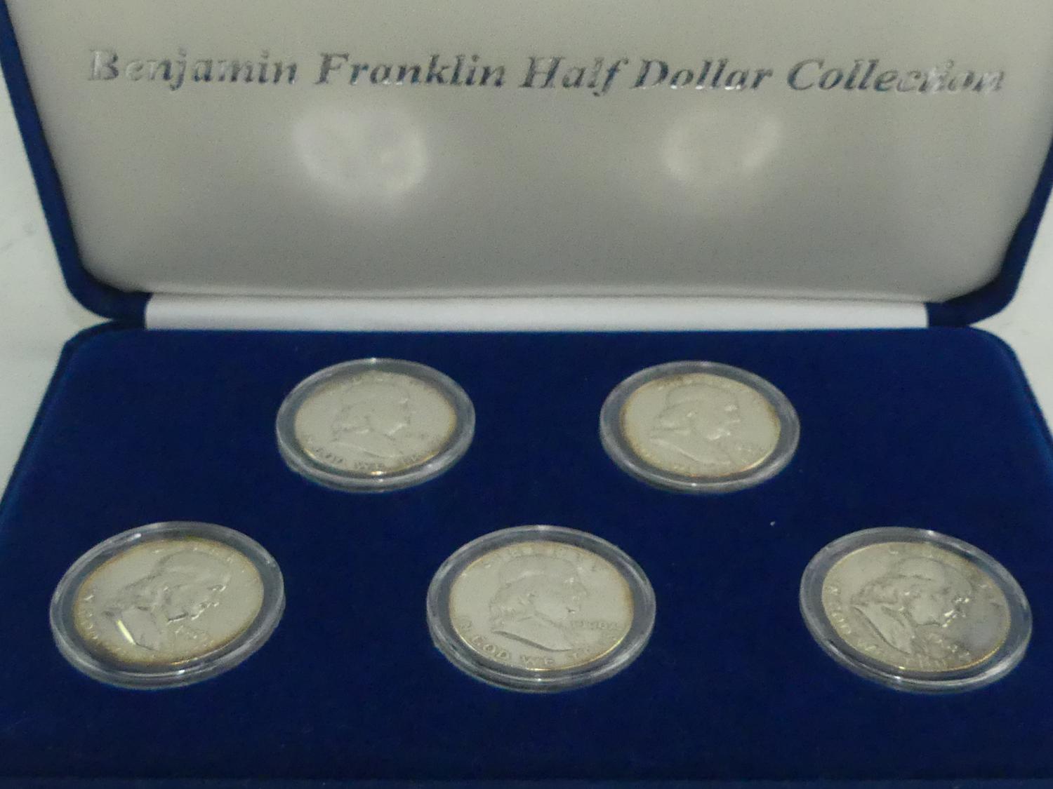 cased set of five benjamin franklin half dollar coin collection