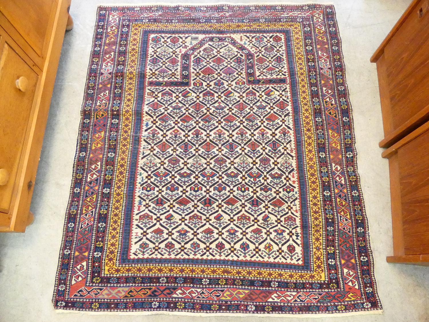 antique daghestan prayer rug, circa 1900, 4'7" x 3'11"