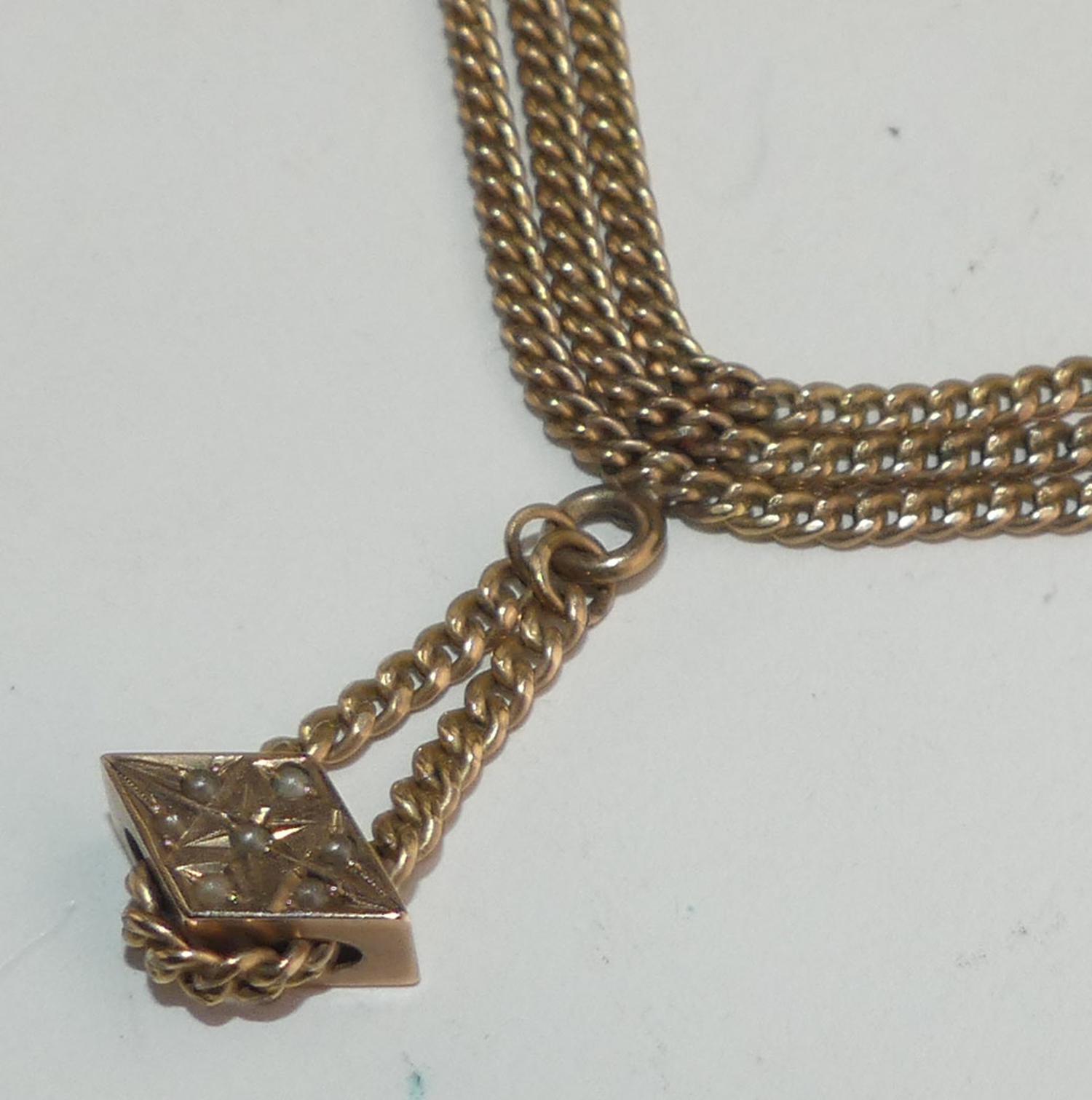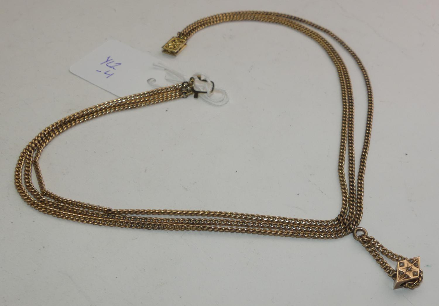 victorian 10k pink gold chain necklace and slider, converted, w/a 21grams gross weight, length 15 1/2"