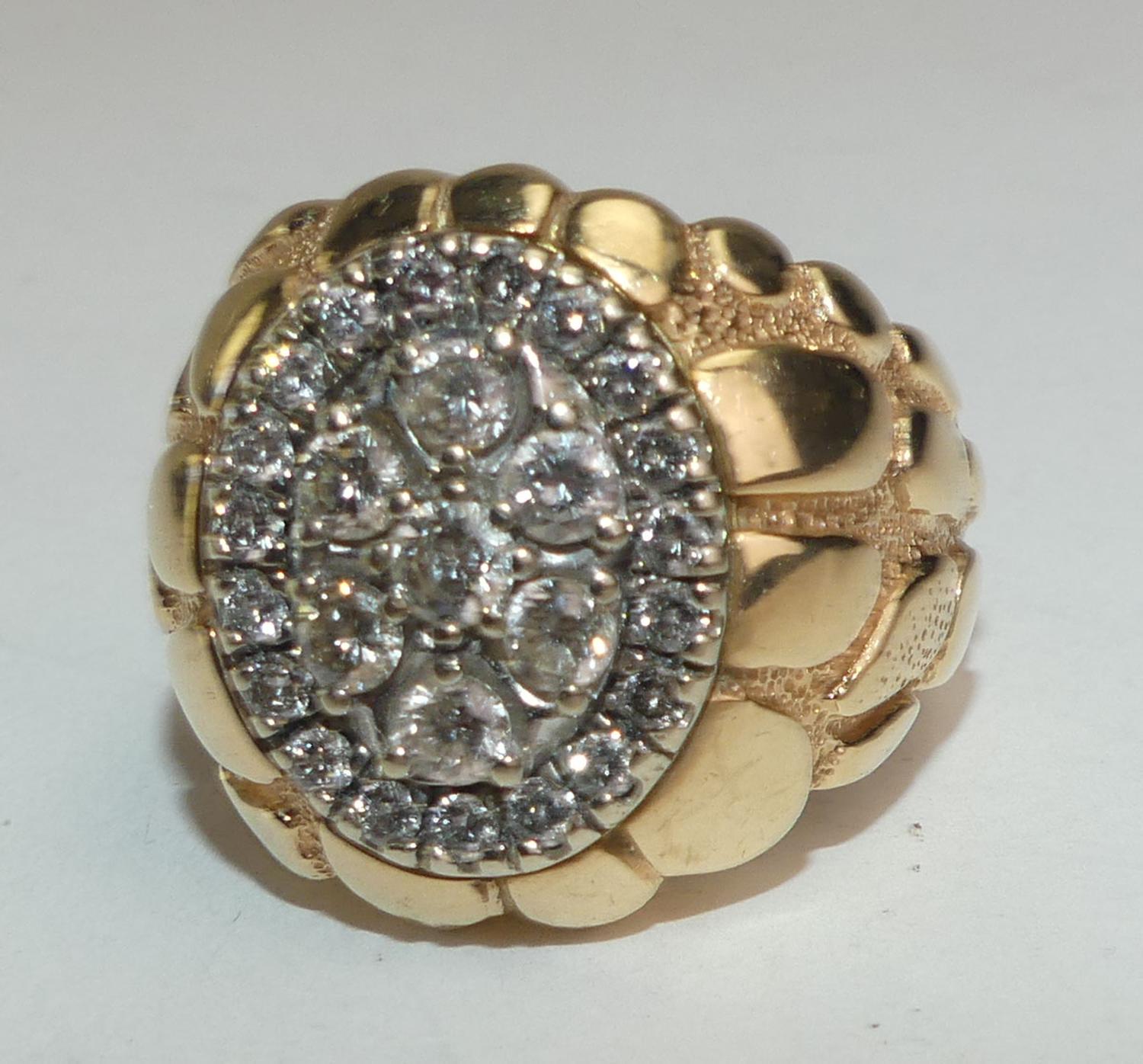 set with 7 round brilliant diamonds, weighing approx 1.05cts, and 18 smaller round brilliant weighing approx .95cts, total weight of diamonds 2.00cts