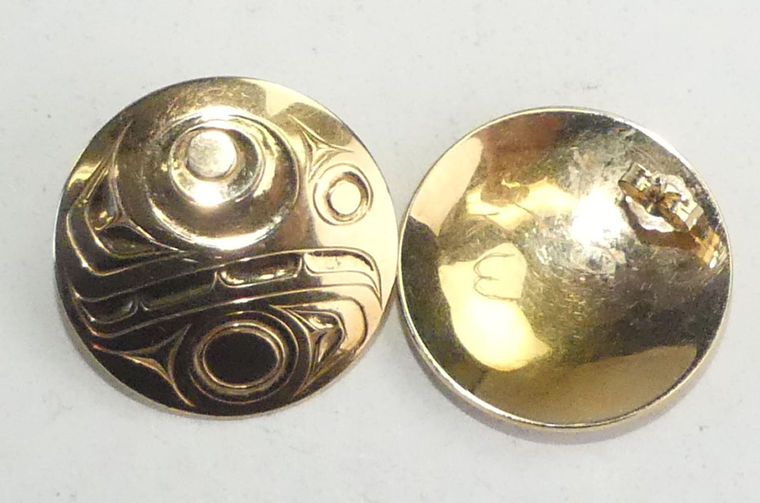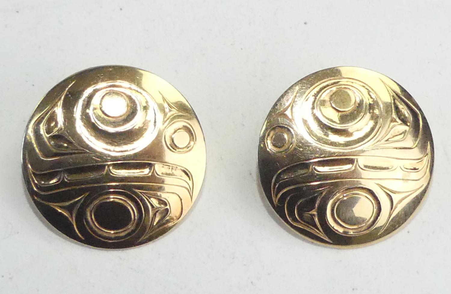 northwest coast native 14k gold earrings, w/a 9.8 grams