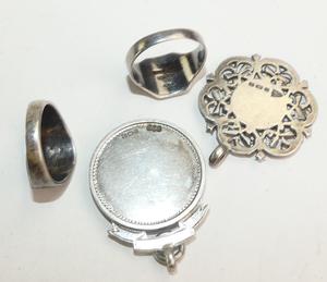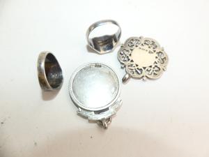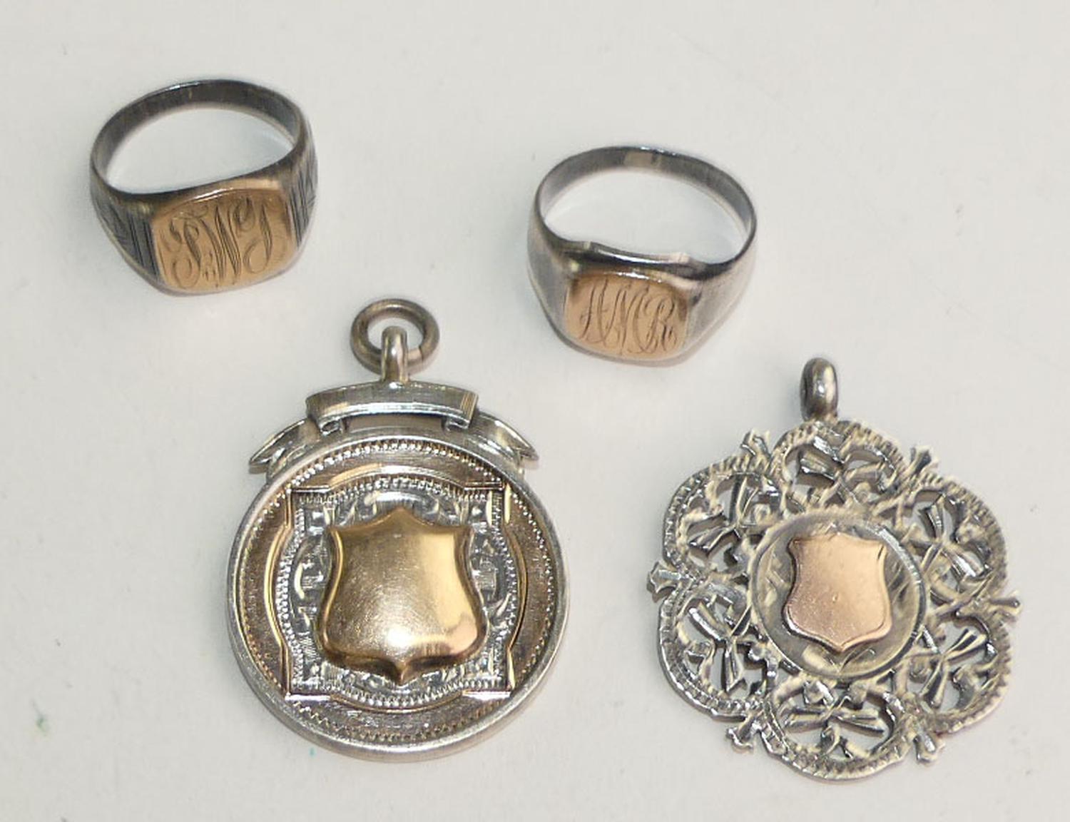1900s sterling silver rose gold sheild watch fob pendants, with 2 rings