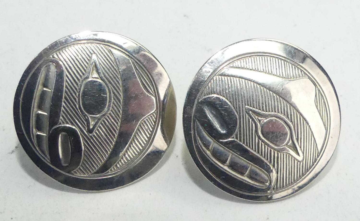 northwest coast native sterling silver earrings, r. adkins, 6.1 grams