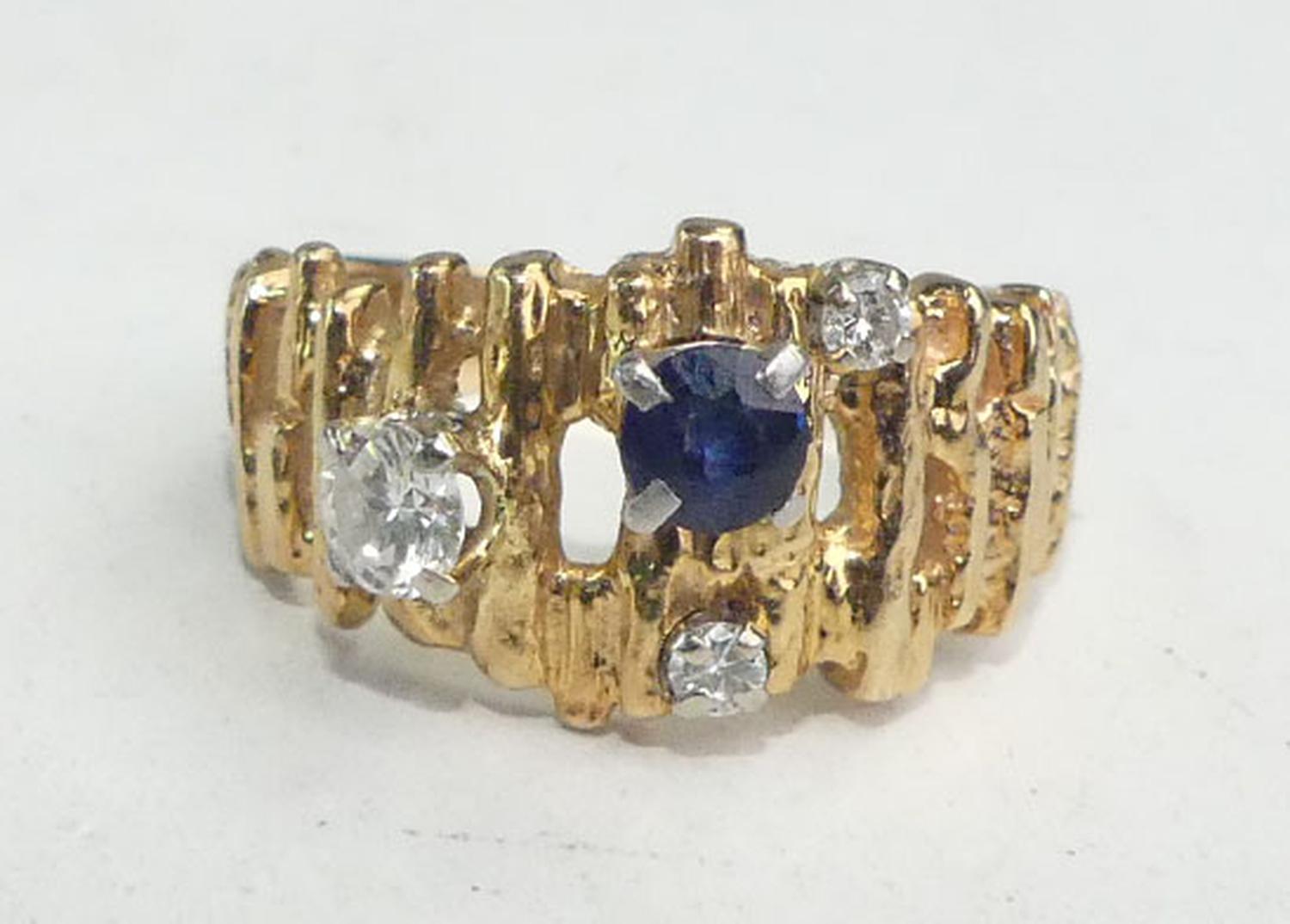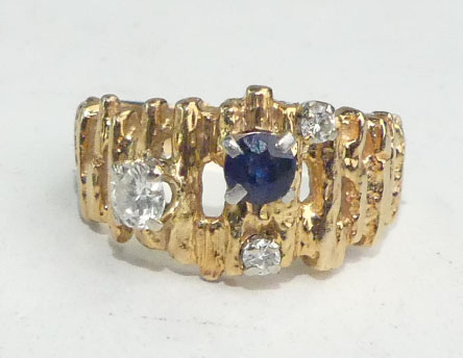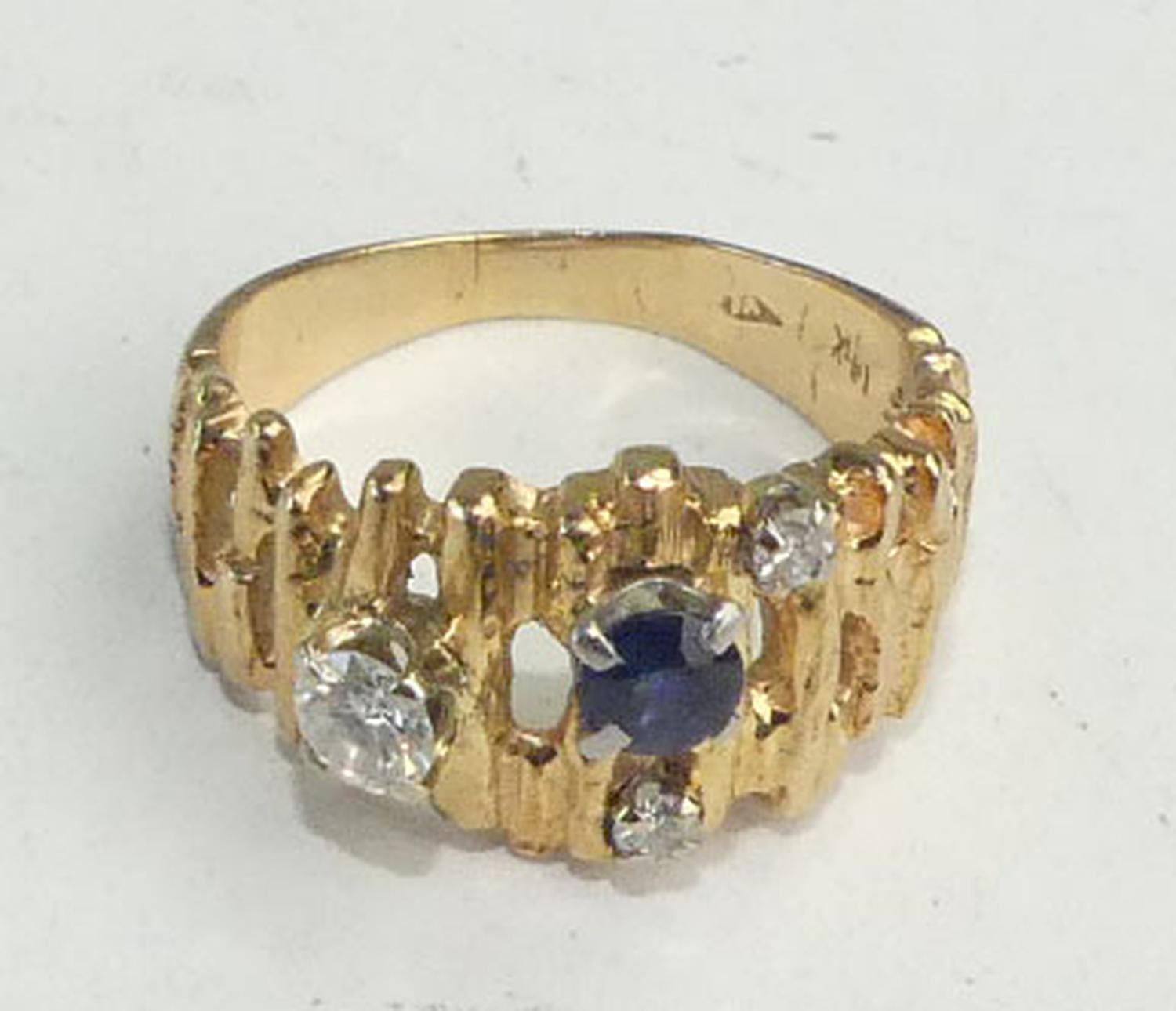 14k diamond and sapphire brutalist ring, size 7 1/4, weighing approx 5.9 grams
