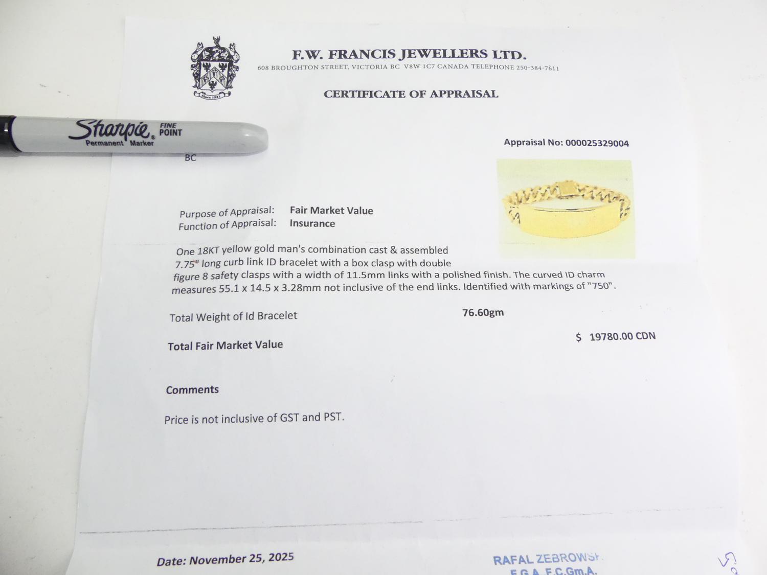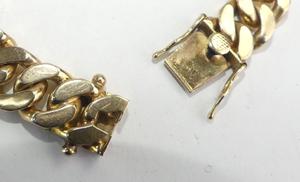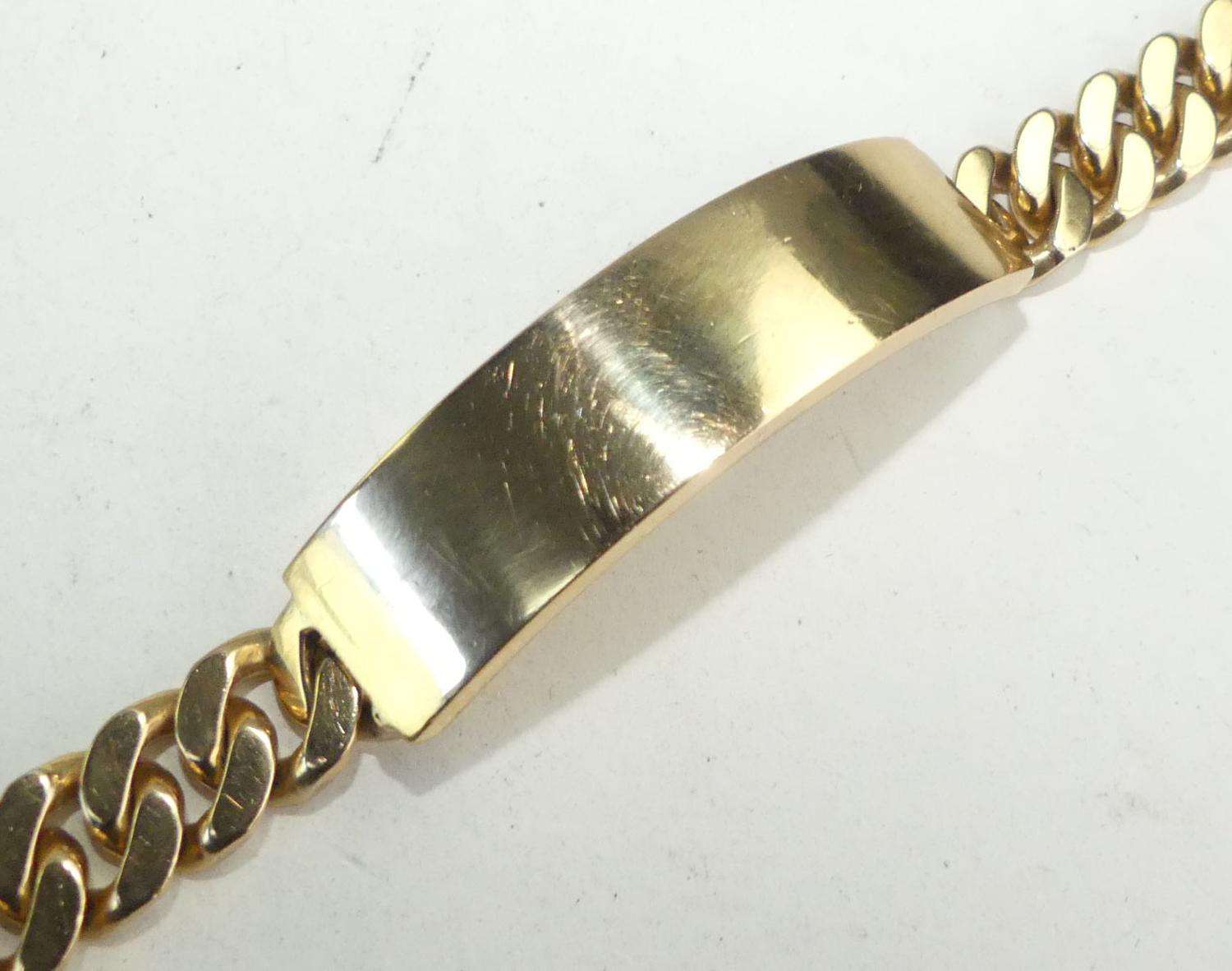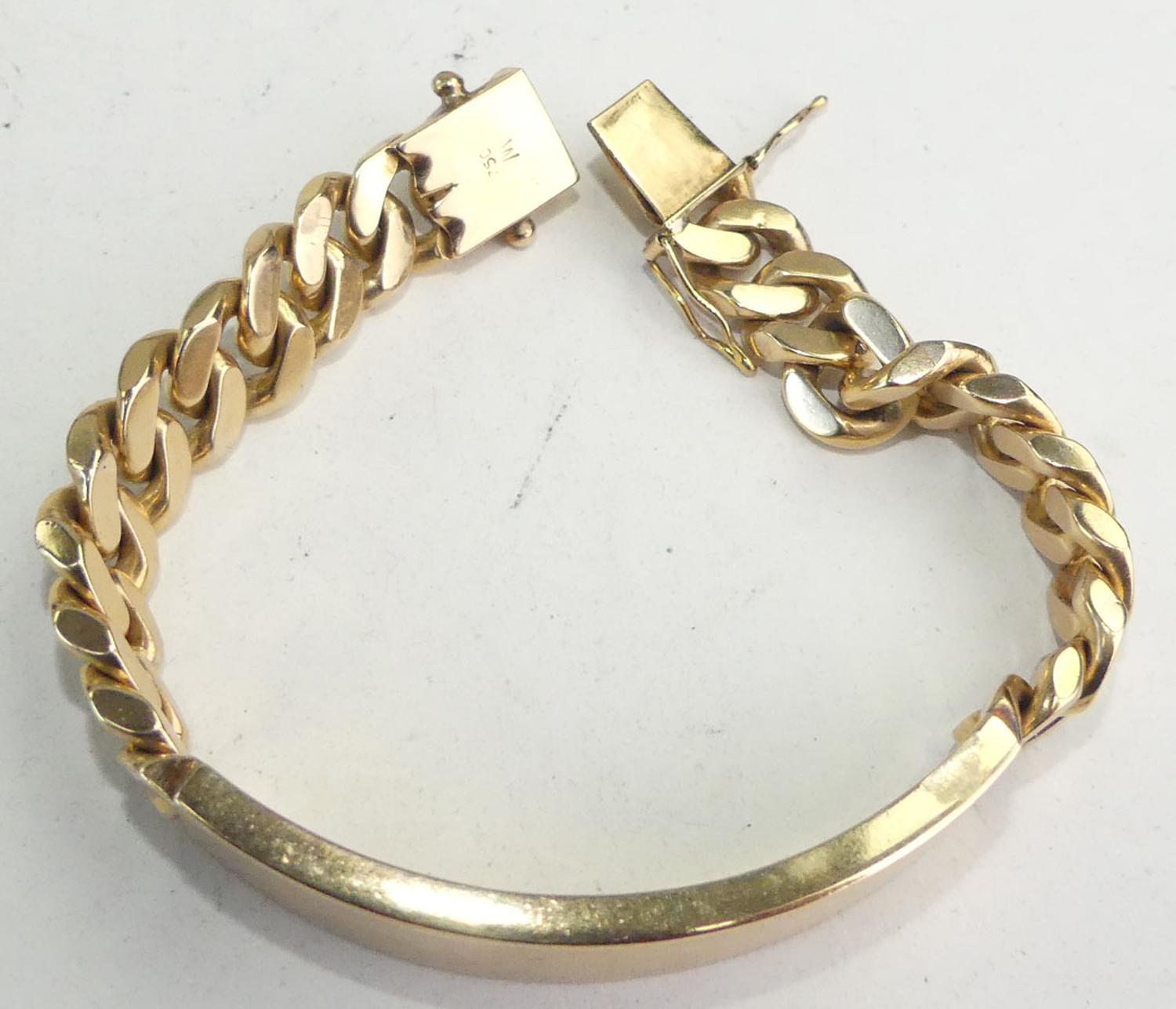 mens 18k curb link id bracelet, length 8", weighing approx 76.6 grams, with appraisal