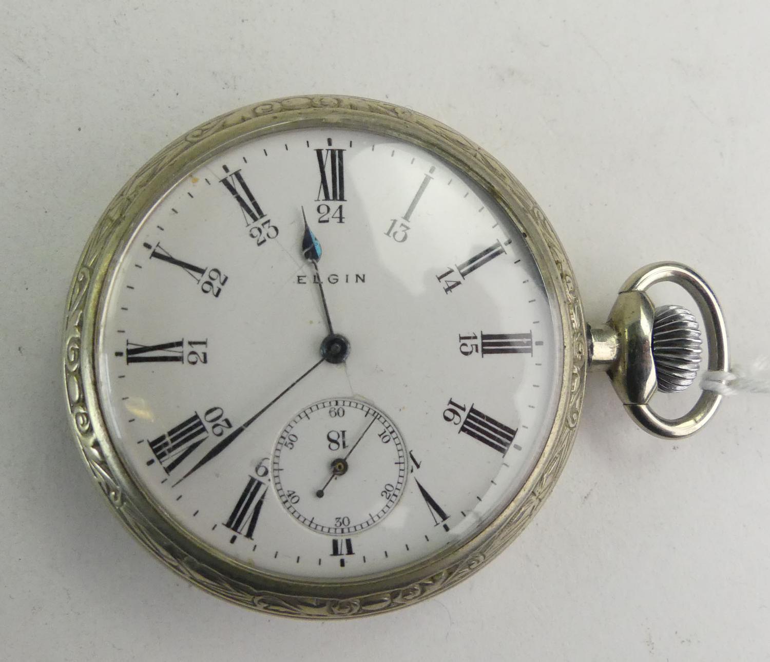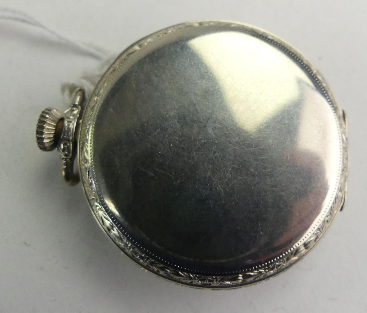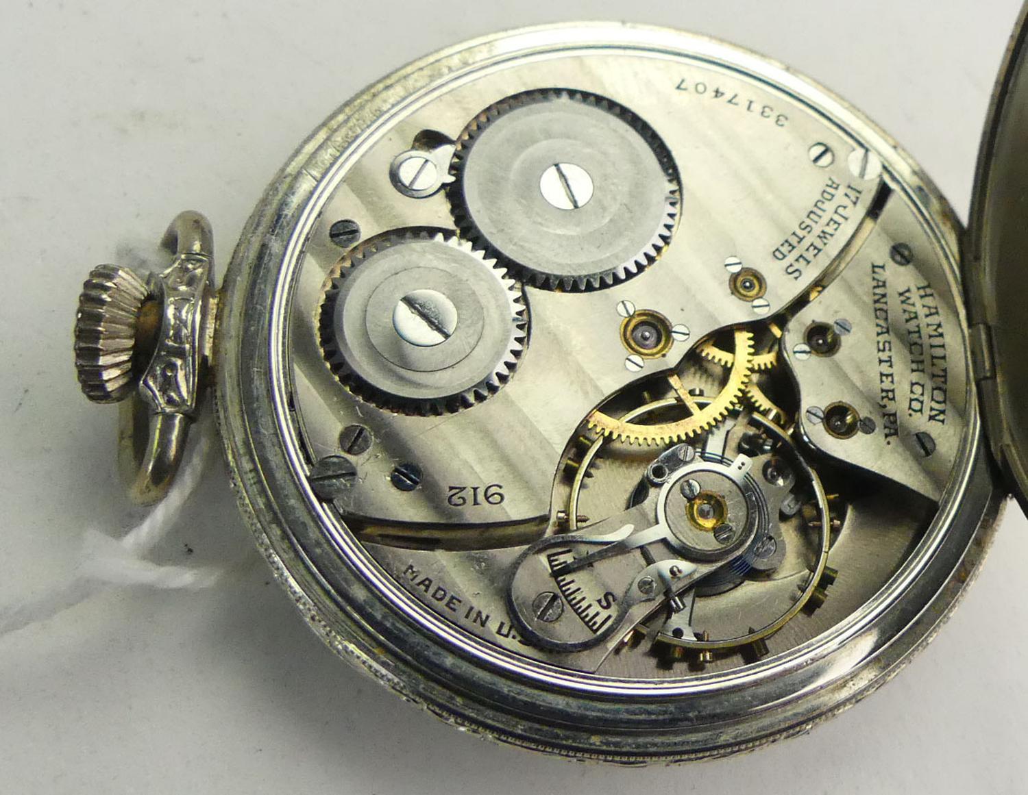art deco hamilton white gold filled openfaced 17 jewel pocket watch, ser# 3317407